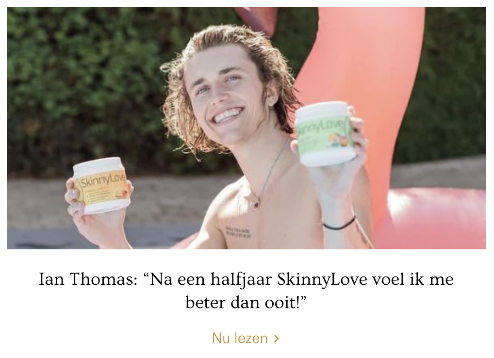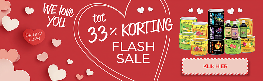✓ SkinnyLove, Immunity Booster, Summer Booster en Holiday Booster zijn erkende voedingssupplementen. * 100% afslankgarantie bij SkinnyLove vermageringskuur (2x 500g) : niet tevreden, geld terug (meer info ») Bij morbide obesiteit zal SkinnyLove je goed kunnen helpen; vanwege de gevaren die gepaard gaan met dit type overgewicht adviseren we je tegelijk hierover te spreken met je behandelende arts. ¹ Camellia sinensis / Opuntia ficusindica / Matcha groene thee ondersteunt de gewichtscontrole en heeft een gunstige invloed op het vetmetabolisme. ² Curcuma longa / Opuntia ficusindica heeft een gunstige invloed op het vetmetabolisme. ³ Cinnamomum cassia / Zingiber officinale draagt bij tot de instandhouding van normale bloedsuikergehalten. ⁴ Zingiber officinale / Curcuma longa / Panax ginseng / Vitamine C draagt bij tot de normale werking van het immuunsysteem en de natuurlijke weerstand van het lichaam. ⁵ Zingiber officinale draagt bij tot verbeterde energie en heeft een verkwikkende werking bij vermoeidheid. ⁶ Rosmarinus officinales ondersteunt de inwendige reiniging en de normale leverwerking. ⁷ Curcuma longa en Piper nigrum bevorderen de huidgezondheid en houden je uiterlijk fris en jeugdig. Piper nigrum is een antioxidant en beschermt de huid tegen vrije radicalen. ⁸ Vitamine C draagt bij tot de normale collageenvorming voor normale werking van de huid. ⁹ Johannesbroodpitmeel / Carobe vermindert het hongergevoel en beperkt de cravings. ¹⁰ Vezelrijk product. ¹¹ Vaccinium myrtillus ondersteunt de spijsvertering. ¹² Thymus vulgaris heeft een kalmerende werking op de luchtwegen en werkt verzachtend op de keel. Daarnaast ondersteunt het de afscheiding van slijmen in de bovenste luchtwegen. Salvia officinalis heeft een verzachtende werking op de keel en biedt verlichting bij droge hoest. ¹³ Ginseng helpt bij het onderhouden van goede seksuele relaties. ¹⁴ Bèta-glucanen uit haver verlagen de cholesterol. Een hoog cholesterolgehalte is een risicofactor voor de ontwikkeling van hart- en vaatziekten. Voor het bekomen van een cholesterolverlagend effect is een dagelijkse inname van 3g bèta-glucanen nodig of 6 SkinnyLove Crackers per dag. ¹⁵ Bevat cafeïne, deze bevordert de alertheid. ¹⁶ Kurkuma draagt bij tot het behoud van soepele gewrichten en spieren. ¹⁷ Brandnetel ondersteunt de gewrichten. ¹⁸ Biotine en zink dragen bij tot de instandhouding van een normale huid. Vitamine C draagt bij tot de normale collageenvorming voor de normale werking van de huid. ¹⁹ Zink en selen dragen bij tot de bescherming van cellen tegen oxidatieve stress. ²⁰ Zink speelt een rol in het celdelingsproces. ²¹ Choline bevordert het normaal vetmetabolisme, wat helpt bij gewichtsverlies. ²² Chroom draagt bij tot het behoud van normale bloedsuikerspiegels ²³ Fenegriek ondersteunt het koolhydraat- en het vetmetabolisme en draagt bij tot het behoud van normaal bloedsuikermetabolisme. ²⁴ Effecten van een voedingssupplement gericht op de controle van de bloedglucose om te helpen bij gewichtsbeheersing, wat invloed heeft op eetlust, honger en verzadiging.