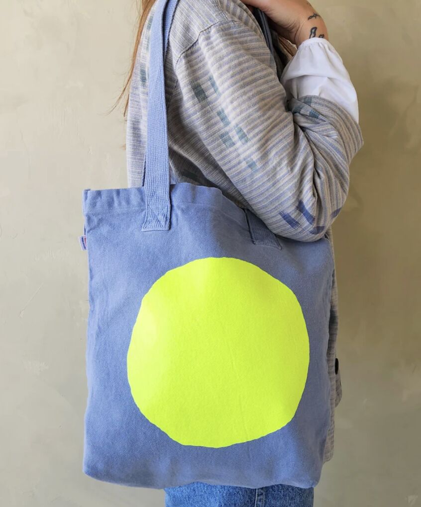 Janelle Pietrzak, of All Roads, envisions canvases that are museum worthy! Tote this simple, eye-popping one around with your beach read & blanket. Chainstitch your name if you'd like too. We love how each one is unique & printed in Coachella Valley.