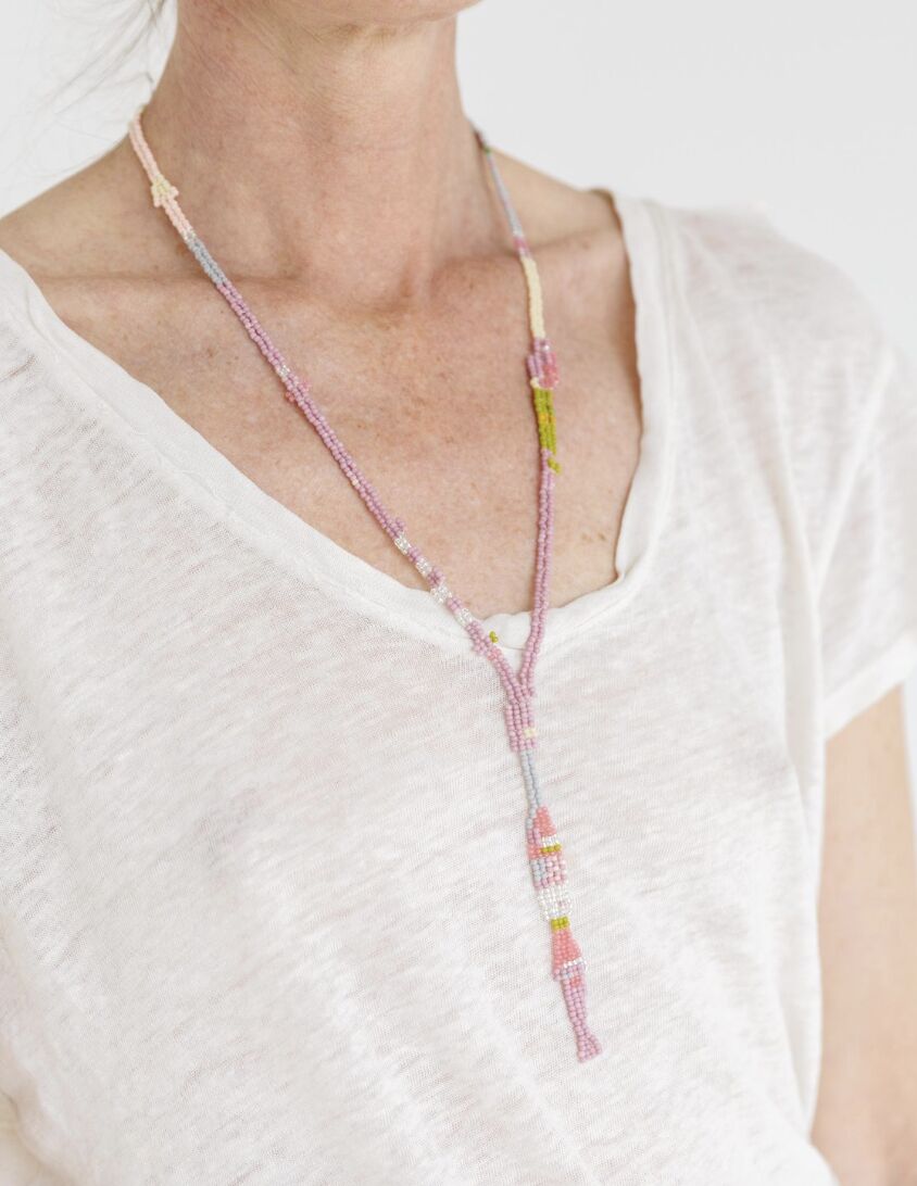 With each piece handwoven in Colorado, these dangling glass beaded necklaces are so elegant & fun! Be sure to peek around the whole dreamy collection to see what one (maybe the teal!?) is for you. Liana's rec in the color purple pictured here :)